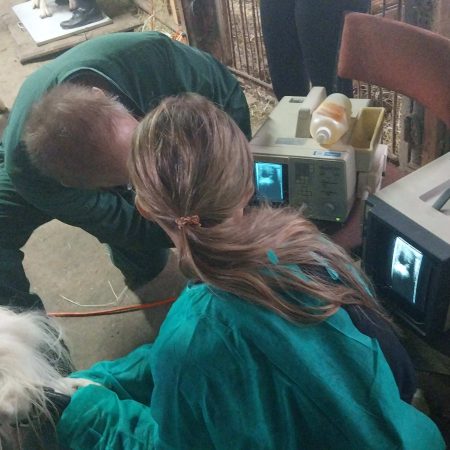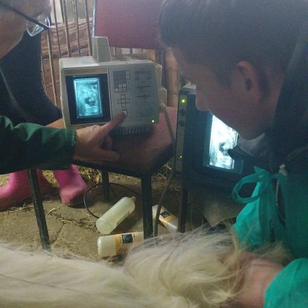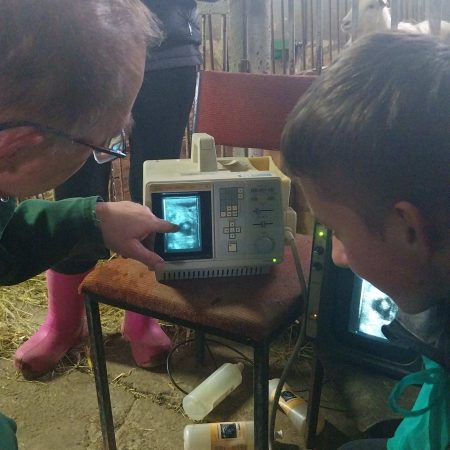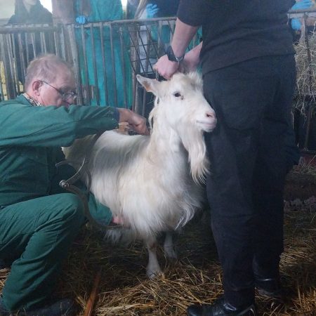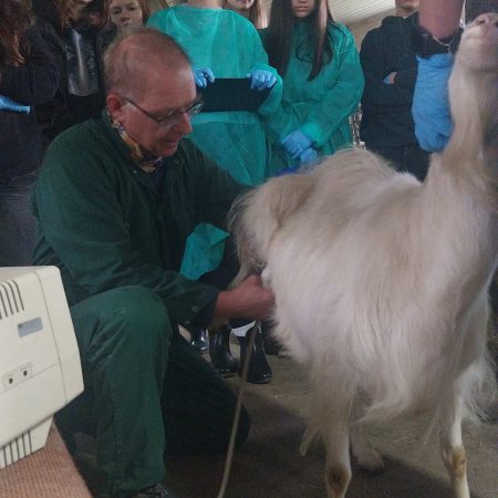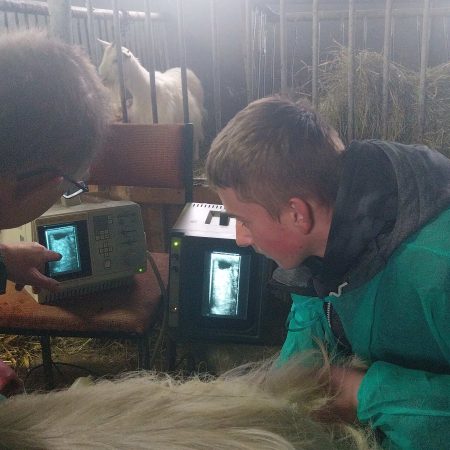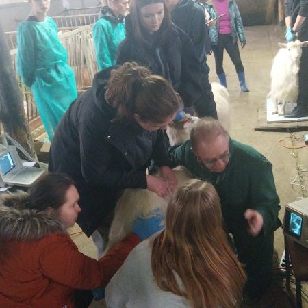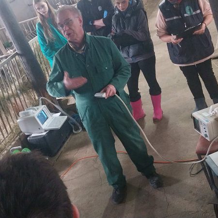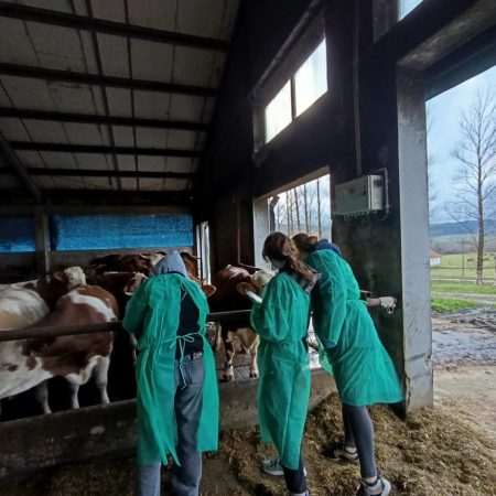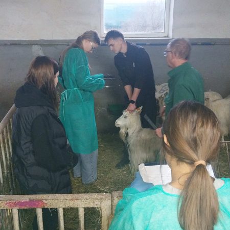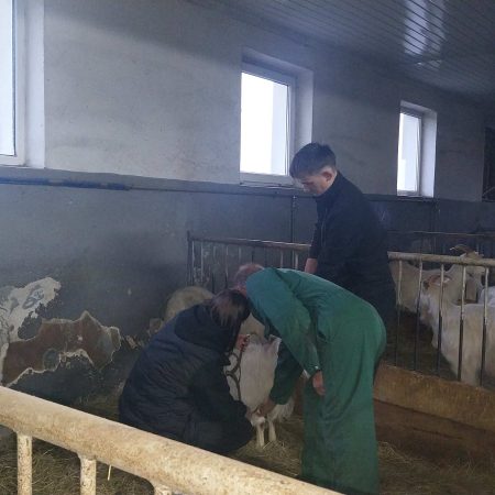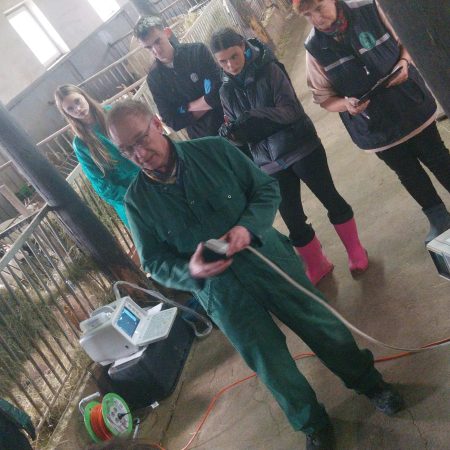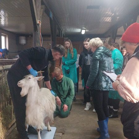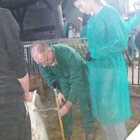 W dalszej części spotkania duża grupa uczniów przejechała do Zakładu Doświadczalnego IZ PIB w Odrzechowej, gdzie uczestniczyła w zajęciach terenowych. Cała grupa została podzielona na dwie części. Jedni uczniowie przeprowadzili badanie skuteczności przeprowadzonej stanówki kóz – badanie USG ciąży, a także pomiary masy ciała kóz w stadzie i wykonanie pomiarów zoometrycznych. Osoby odpowiedzialne za zajęcia terenowe w koziarni to dr inż. Jacek Sikora ZHOK IZ PIB, mgr Oliwia Szczęsna ZD IZ PIB Odrzechowa. Druga grupa uczniów zwiedzała stajnie i określała dobrostan i zdrowotność koni rasy huculskiej, a następnie zwiedzili tradycyjną i nowoczesną oborę krów rasy simental. Gospodarzami spotkania byli dr inż. Władysław Brejta Prezes ZD IZ PIB Odrzechowa i mgr inż. Sławomir Jurkowski ZD IZ PIB Odrzechowa.